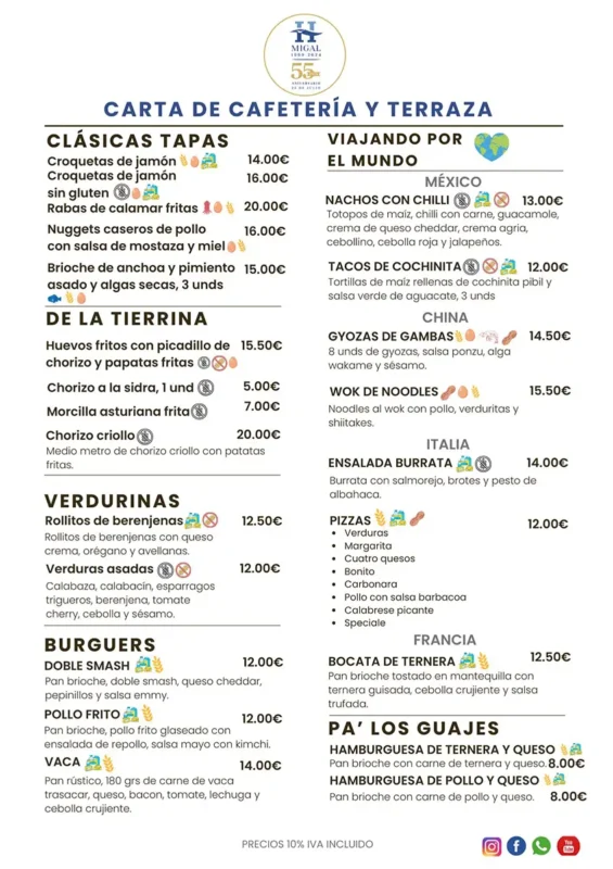 - Encargos con antelación para menús cerrados (mínimo 10 personas).